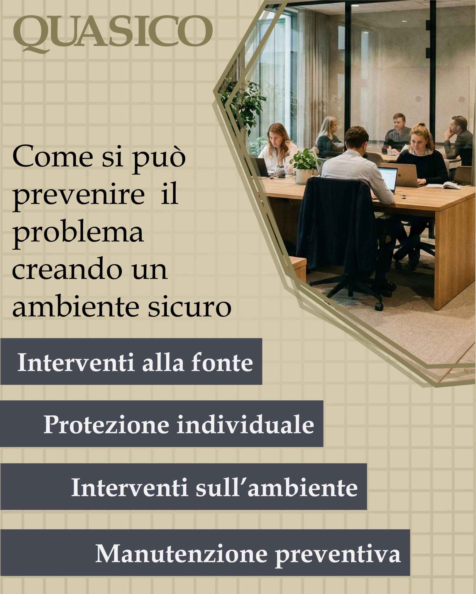 In tutto questo caos, noi di Quasico portiamo la semplicità di far riferimento a un unico interlocutore che progetta e realizza soluzioni studiate su misura per le tue necessità. Ogni operazione sarà svolta da membri scelti del nostro Quasico Network, per offrire efficienza e qualità.